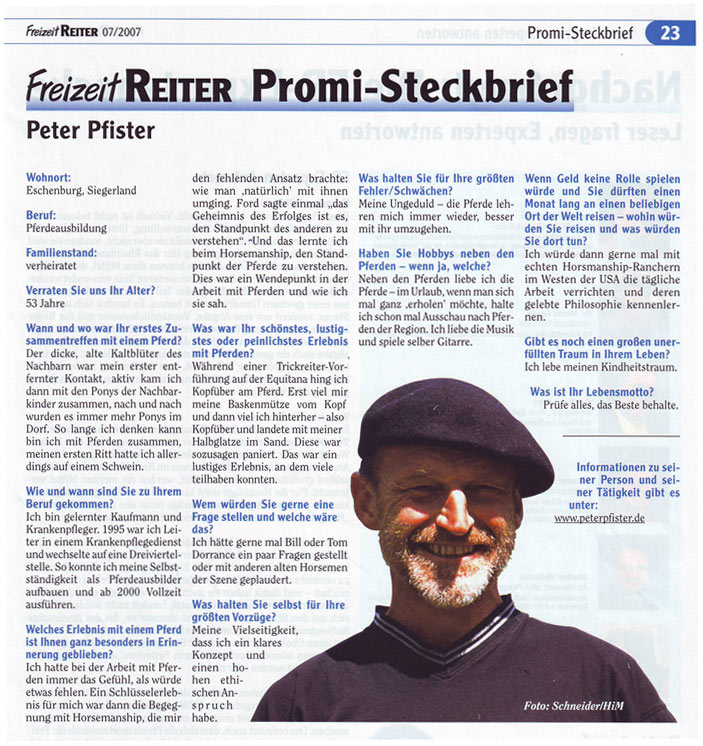 Freizeit Reiter 7/2007 - Promi Steckbrief