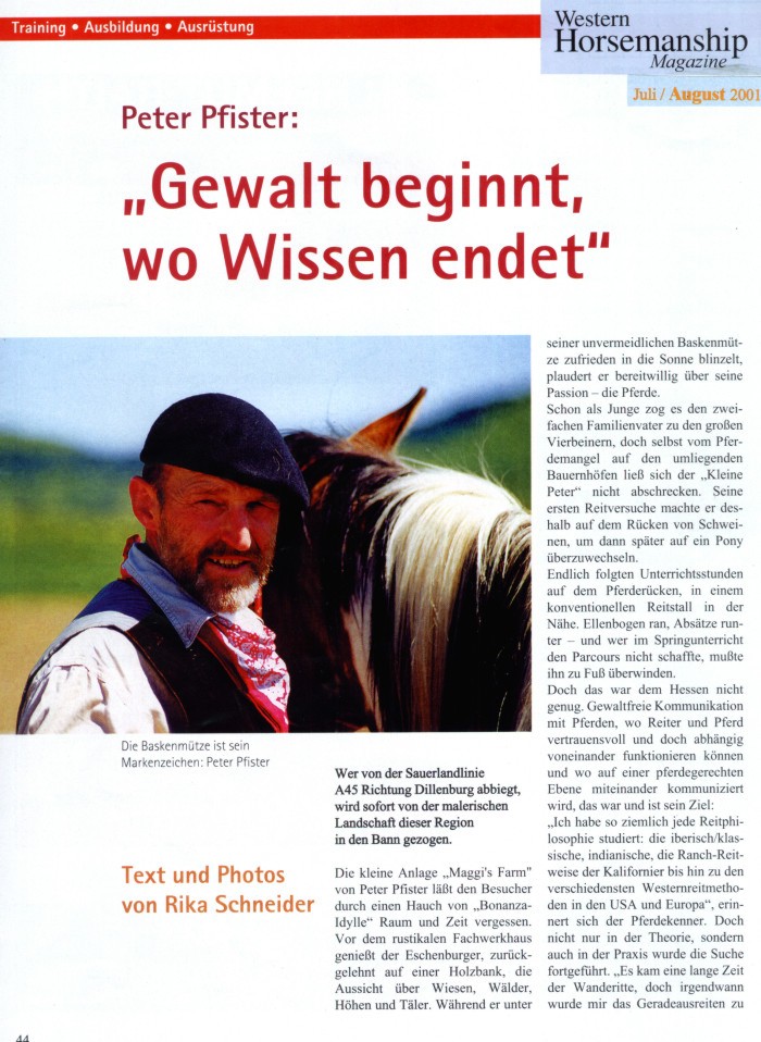 Gewalt beginnt wo Wissen endet (Western Horsemanship Magazine Juli/August 2001)