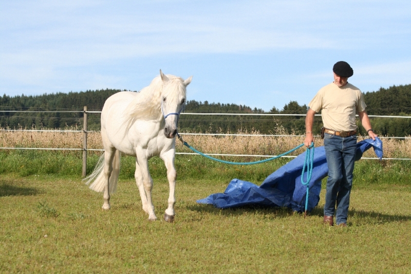 Keine Zeit in der Entwicklungsgeschichte war für Pferde so gefährlich wie die heutige. Dichter Straßenverkehr, Baustellen, Flugzeuge, Traktoren, Modellflieger - Plastikplanen, Regenschirme, Sprühflaschen, ....... alles Dinge, die unsere Pferde ängstigen und nicht selten fluchtartigen Verhaltensweisen bei Ihnen auslösen. Diese wiederum können den Menschen, der mit ihnen umgeht, in recht gefährliche Situationen bringen.